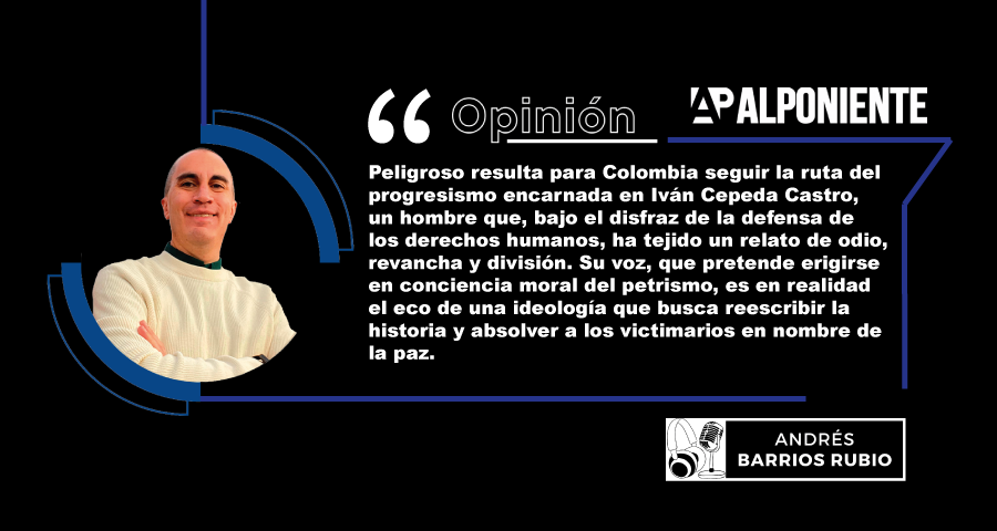 Resulta preocupante para Colombia seguir el camino del progresismo encarnado en Iván Cepeda Castro, un individuo que, bajo el pretexto de la defensa de los derechos humanos, ha creado un relato de odio, venganza y división. Su voz, que pretende erigirse como la conciencia moral del petrismo, en realidad representa el eco de una ideología que busca reescribir la historia y absolver a los victimarios en nombre de la paz. Cepeda personifica la faceta más radical de un progresismo que no edifica, sino que destruye; que no reconcilia, sino que enfrenta; que no perdona, sino que condena. Ciertamente, adherirse a su modelo político conllevaría una condena del país a un ciclo interminable de resentimiento y fractura nacional. Es lo que afirma el periodista-investigador-consultor en comunicación y marketing digital, Andrés Barrios Rubio, en la columna de opinión en AlPoniente.com que esta semana tituló «El progresismo encarnado en Iván Cepeda Castro» y amplía en el podcast «Panorama Digital».
